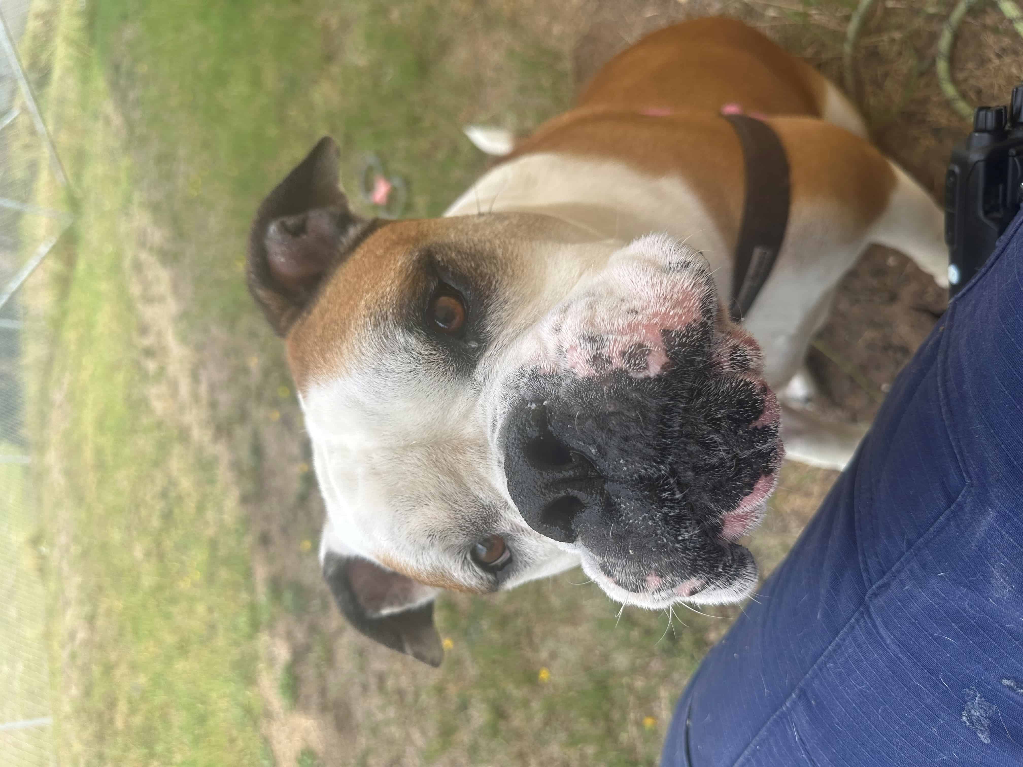 Hi, I’m Bentley — a five-year-old Australian Bulldog with a sturdy build, a soft heart, and a very serious commitment to loving my people. I’m a charming, loyal kind of guy with a little burst of happy excitement when I see you (I just can’t help it!).