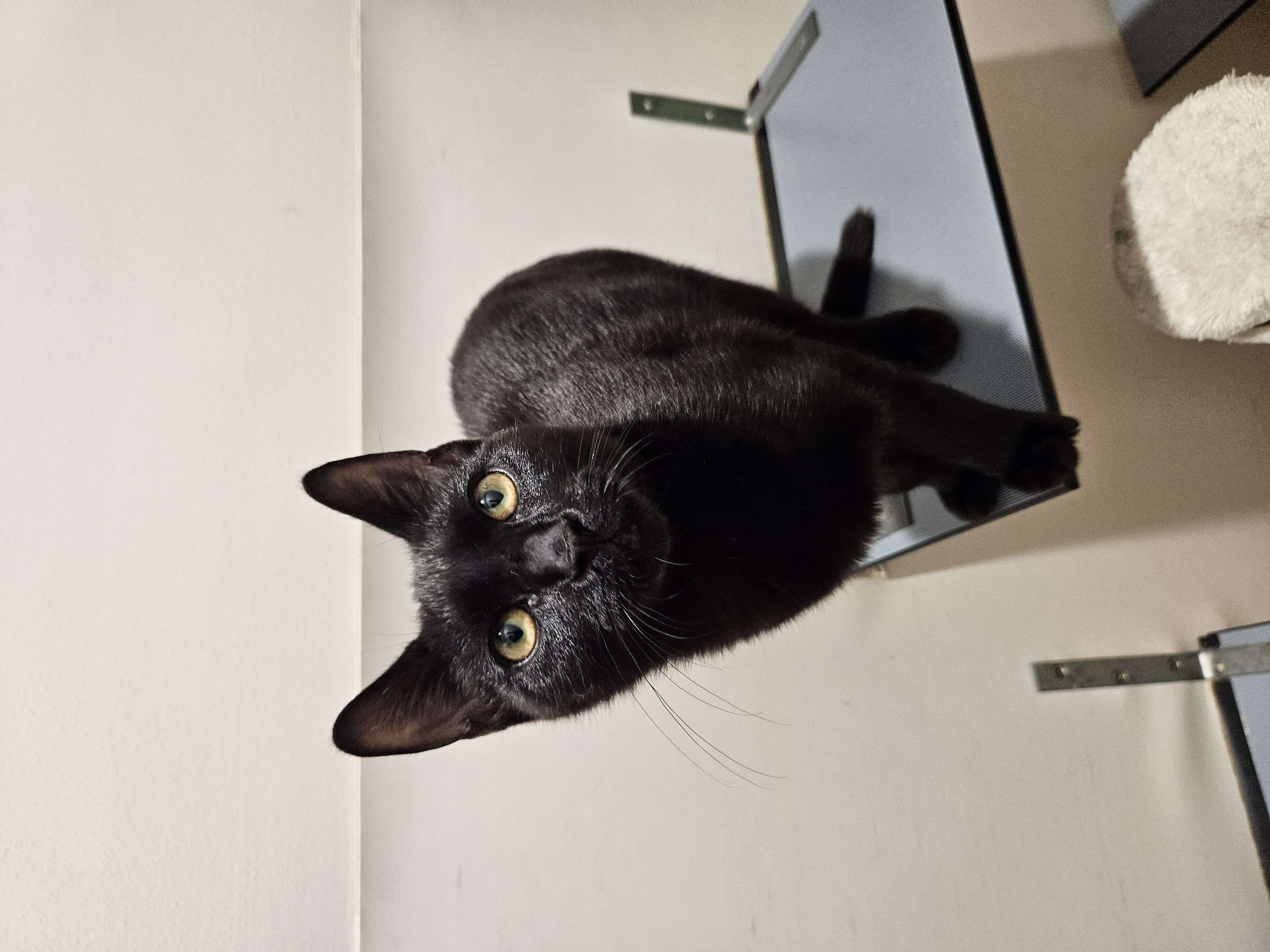 Hi, I’m Cosmo, a playful 6-month-old male Domestic Short Hair. I’m all energy and curiosity—zoomies, pounces, and a nose for every corner of the house. I love chasing feather wands, batting soft balls, and climbing up cozy perches. I’m happiest with daily play sessions and quiet cuddle times after I’ve burned off steam. I do best in a quiet, calm household, where I can settle and purr softly by your side. I’m great with kids who are at least 6 years old and understand gentle handling. My ideal home has safe spaces to explore, a sturdy scratching post, and plenty of enrichment to keep me busy. I’m affectionate once I know you and will reward you with head bumps and happy purrs. If you’re seeking an energetic, loving kitten to grow with, I’m your guy. Could your home be the peaceful stage for my next adventures? My friend that is housed with me, we do like to play and sleep next to each other, if your like two kitty kats then we could go together, or if you would just prefer me, then that's fine too.