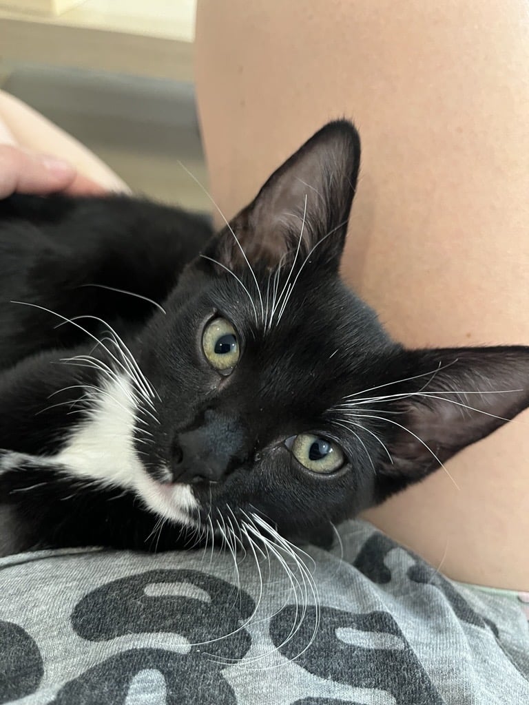 Hi, I’m Bean, a female Domestic Short Hair kitten. I am 3 months old. I’m a curious, friendly little furball who loves exploring every corner and soaking up sun in a warm spot. My purr starts the moment I’m near you, and I’m happy to chase a feather wand or a soft toy during play. I’m learning good manners with my litter box and scratching post, and I’d thrive in a calm, average-energy home where I can wind down in a cozy lap after a busy day. I’m gentle and social, and I’d be happy with kids who are kind and patient with me as I grow. I’m full of kitten energy, yet I also treasure quiet cuddle times when you’re ready to relax. I promise to bring laughter, warmth, and a touch of playful mischief to your home as I blossom. If you’re looking for a small, affectionate companion to grow with, I’d love to meet you. Please ask about Bean—the next best purring friend you could invite into your life.