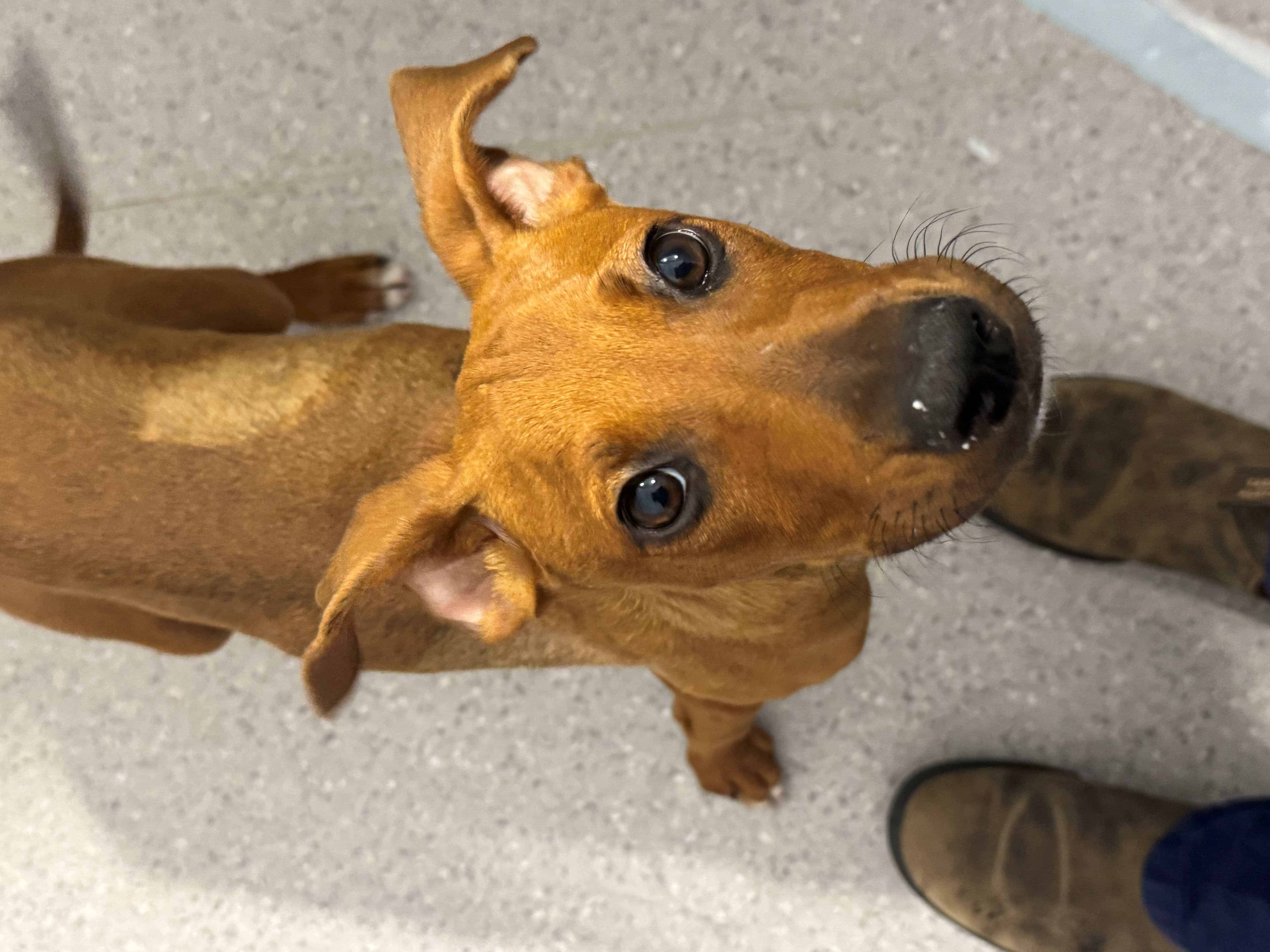 I’m a gentle, slightly shy little pup with a big heart. Being a Hungarian Vizsla x Rhodesian Ridgeback, I’ve got lots of love to give—I’m just still figuring out that the world isn’t so scary yet. I’ll need a kind, patient family who can take things nice and slow while I build my confidence.