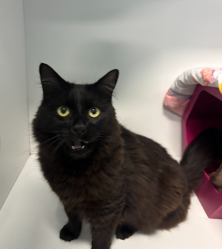 Salem is a beautiful black cat with a gentle soul. Though he is shy at first, she blossoms with patience and kindness. he loves quiet moments and gentle pets, especially in his favorite cozy spots around the house. Salem thrives in a calm environment where he can feel safe and slowly build trust with his humans. Because of his sensitive nature, he would do best in a peaceful, low-activity home without loud noises or lots of commotion.