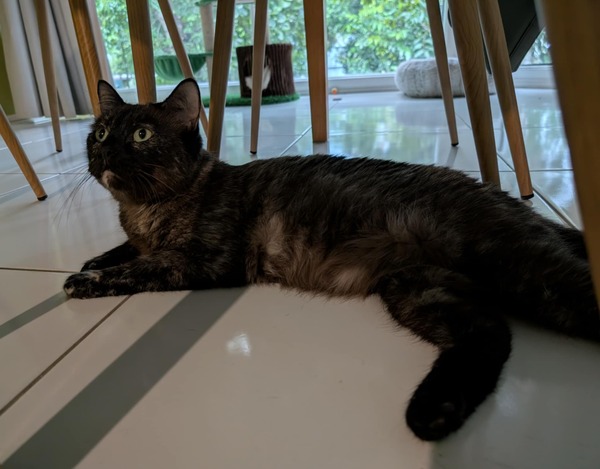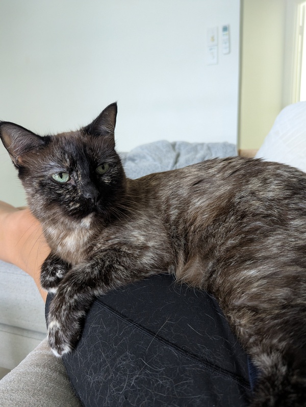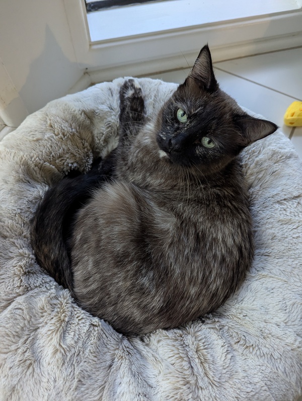 Hi, I'm Sheeba. I'm a young, shy cat who loves cuddles. My days are quiet and sweet, filled with gentle naps and soft purrs. I'm on a strict diet to keep me healthy, so I need someone who can help me with that. I might take a little while to come out of my shell, but once I do, I promise to be the most loving companion. If you're looking for a calm, affectionate friend, I'm the perfect cat for you. Let's make a cozy home together!