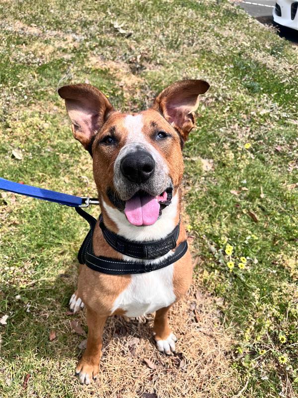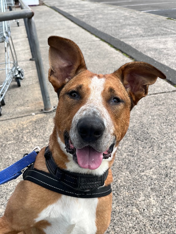 While Frisbee has lots of love to give, she's still learning the ropes when it comes to the world around her. She is very passionate about treats, and benefits most from a consistent routine and patient guidance! Frisbee is best suited to an adults-only home with no other pets and a large secure yard. Her new family must be experienced, confident, and physically capable of managing her 30kg size and boisterous energy. They will need to be committed to continuing her training, helping her build calm behaviours and navigate the world in a positive way.