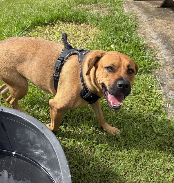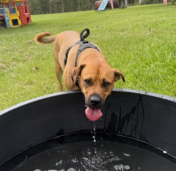 Once Toby begins to trust, his personality blossoms. His happiest moments are in the water-paddling in a kiddie pool, splashing in puddles, or standing in a stream with a goofy grin. It's where he feels confident and free.