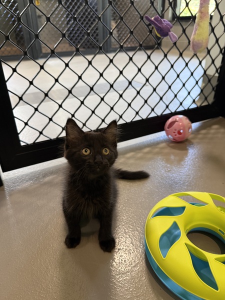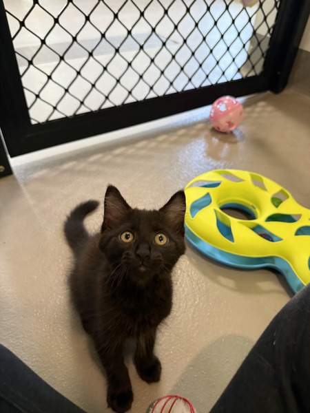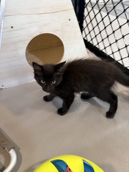 Cupid is a fluffy black boy with bright eyes, a bold spirit, and a personality that sparkles. He's the energetic charmer of the Valentine litter-curious, mischievous, and always ready to turn anything into a game. Cupid loves to explore, chase, climb, and entertain, and he'll happily keep you laughing with his kitten antics.