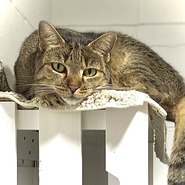 Please meet Marigold - our dark brown tabby lady with big yellow-green eyes. Marigold is a vibrant, happy lady who is always looking for friendly human company. She can have quite a conversation with you because she's never short of a 'meow' or two when she sees you. Marigold is the perfect company for you inside your home, as there's no doubt she'll supervise your work from her warm, comfy bed. When you arrive home, she'll be inside waiting to greet you. She is a very special, senior lady. Her needs are:-** DIET/CARE-A good diet consists of high-quality dry biscuits, wet food and fresh, cool water. We recommend a temporary launch room or nook in which Marigold can feel secure in if she needs to. Her fur coat is short and virtually maintenance free. Regular vet visits will be ongoing. Marigold has been health checked and she has been found to be doing well for her age.** INSIDE LIFESTYLE-Marigold will be very happy inside your home if she has a couple of large, solid cat towers placed near a window and in the family room. Warm comfy beds, wand toys and your company would be great boredom busters.** FRIENDS-A quiet, mature home would suit Marigold nicely. She would do best in a household where children are older and cat savvy. For Marigold to have the home she deserves, she would manage better without other cats or dogs. Her adoption price of $95 includes: >Her desexing, microchip and vaccinations Adoption Price: $95