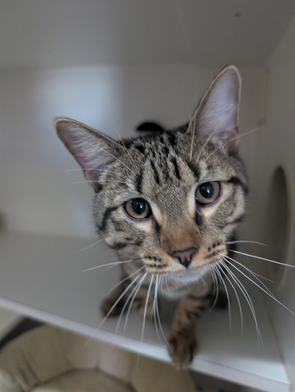 If you're looking for a sweet, confident young cat who's past the tiny baby stage but still full of playful charm, I could be the perfect addition to your home.