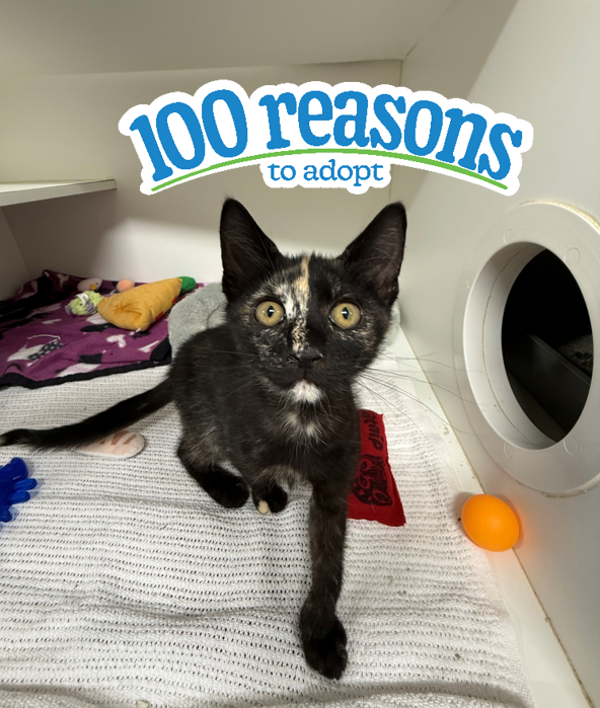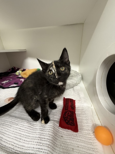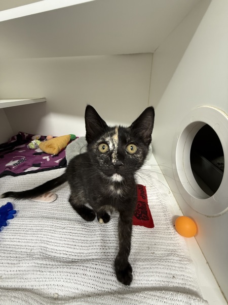 Hi there! I'm Juniper! I'm a confident little kitten looking for my forever home. I'm curious about everything and love exploring, playing with toys, and zooming around before settling down for a cozy nap. I'm a friendly little guy who enjoys attention and isn't afraid to say hello to new people.