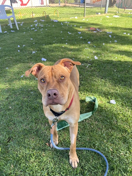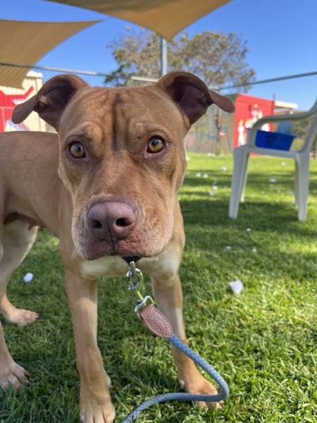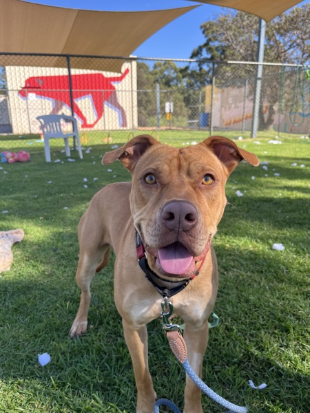 Hi, I'm Mila I'm a lovely one-year-old Staffy girl with a gentle, sensitive nature and so much love to give. I can be a little shy at first, but with a bit of patience and kindness, my sweet personality really shines through.I'd feel most comfortable in a home with older children who can help me build my confidence at my own pace. I may also enjoy having a canine friend, pending a meet to make sure we're a good match.I'd be happy in a home with full-time humans, given a nice settling-in period of course. With the right home, I'll blossom into a loyal, loving companion who will steal your heart in no time.Love,Mila