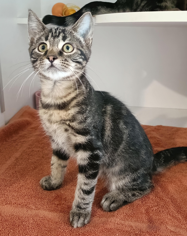 Walter is a confident, outgoing tabby boy who lives life at full speed and loves every minute of it. Playful and fearless, he isn't fazed by anything and is always the first to dive into new adventures-whether that's chasing toys, exploring his surroundings, or turning everyday objects into entertainment. With his high energy and cheeky personality, Walter keeps things fun and lively, and his love of food makes him extra easy to win over.