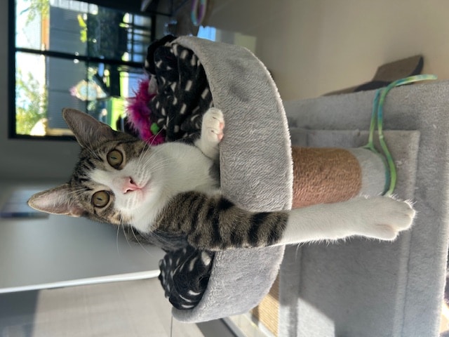 Other pets at home? No worries! – If you choose to adopt a cat that is suitable to live with other animals, it is important that a slow introduction over the course of a few weeks is followed, to ensure a smooth transition into your home for your newly adopted friend, and to not upset any existing furry residents! Please ask our staff for more information.