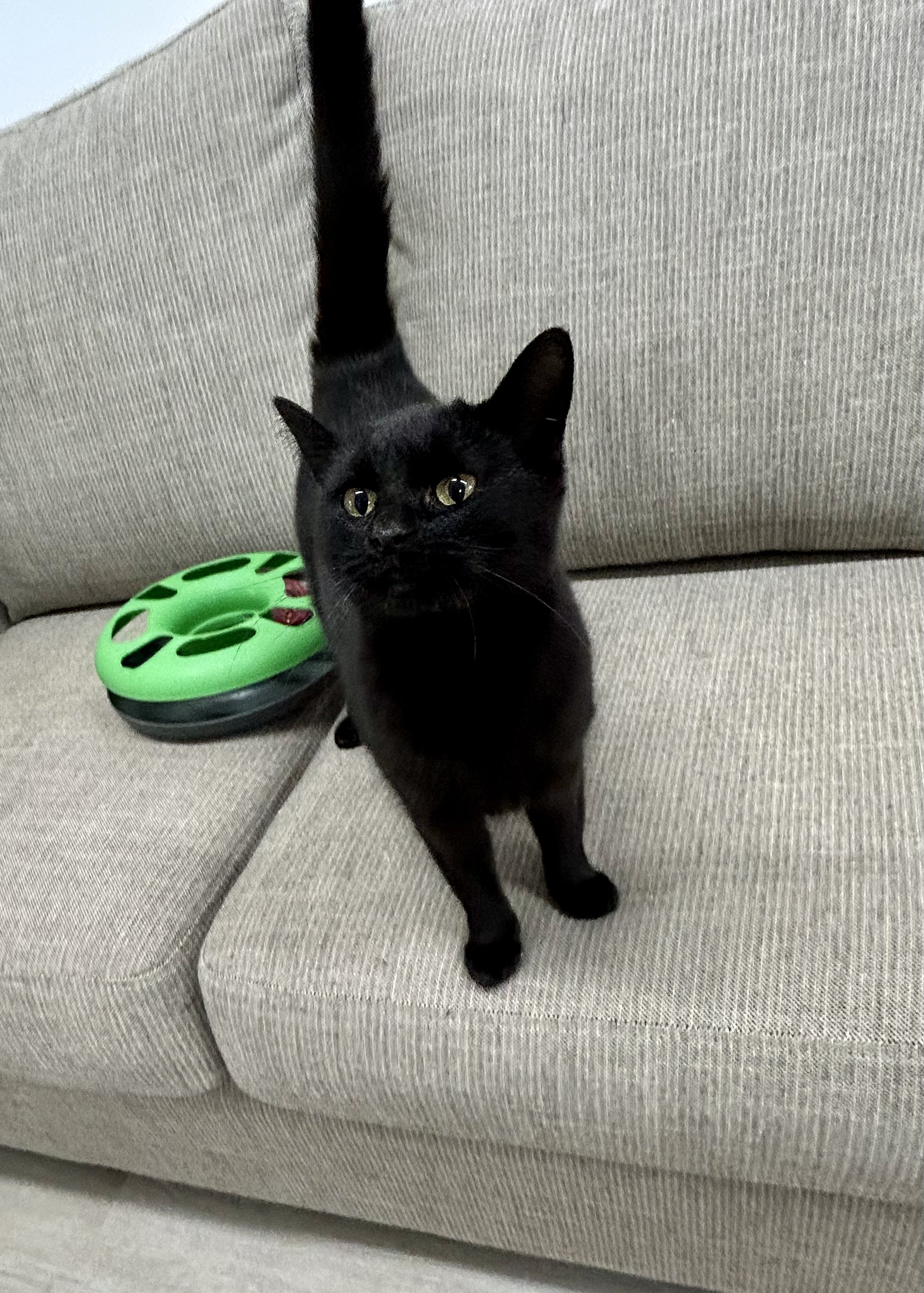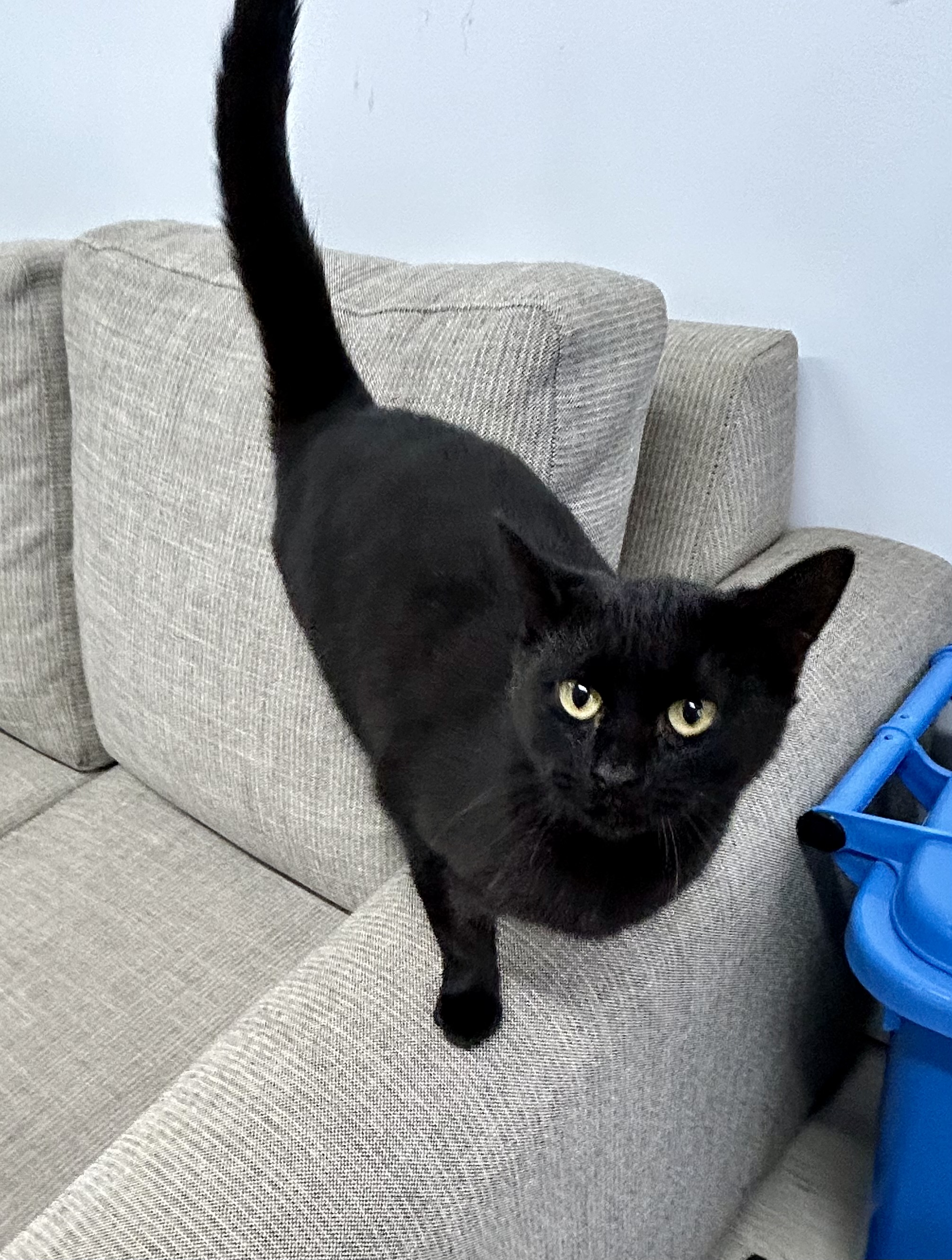 Hello there, I'm Luna! I'm a sprightly Domestic Short Hair lady. Just over a year old, I've got the energy and curiosity of a kitten. I love a good game of chase-the-string, and I'm always up for some fun and frolics. You'll never have a dull moment with me around!
