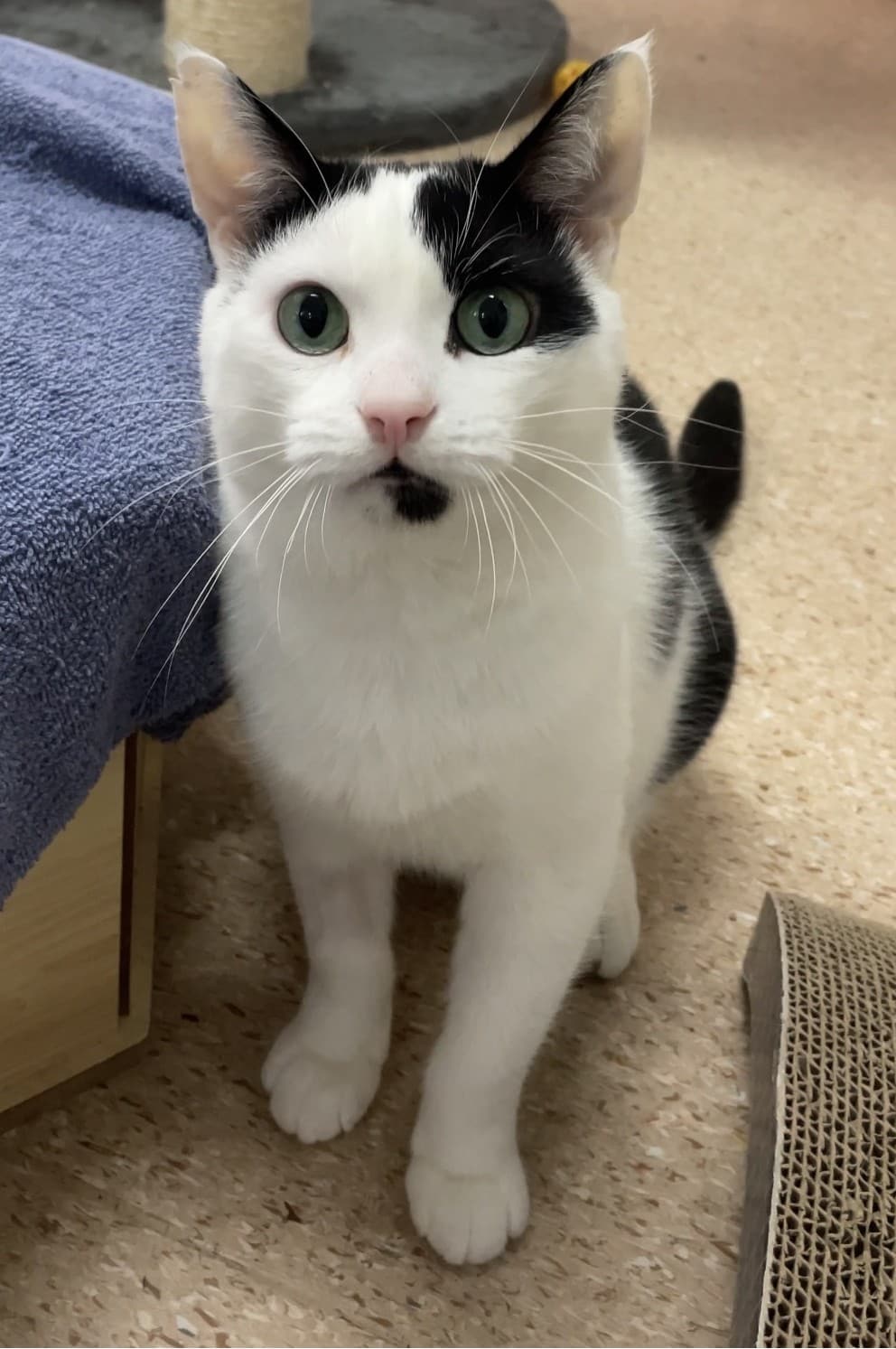 Bailey just needs about two days to settle in during a soft launch. Once he has a little time to decompress and explore at his own pace, his playful and engaging personality really shines. With patience and enrichment, he’ll make a wonderful companion.