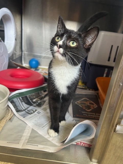 Hi, I’m Oreo, a fluffy little bundle of curiosity and purrs. I’m a Domestic Short Hair kitten with a heart full of play and a nose for adventure. I’m 2 months old, so I’m all about zoomies, gentle wrestling with feather toys, and discovering every nook of my world. I have a high energy level—give me a safe cat tree, a few tunnels, and a sunny window, and I’ll be in motion all day. I’m friendly, quick to chirp and purr when you greet me, and I promise I’m easy to love. I’ve had no known issues with children, so I think I’d fit into many homes with kids who understand I’ll need some quiet cuddle time too. I do best in a quiet, calm environment where I can nap after play and wake up ready for more fun. If you’re looking for a sweet, curious kitten who will grow into a loyal, affectionate cat, I’m Oreo and I’m ready to join your family.