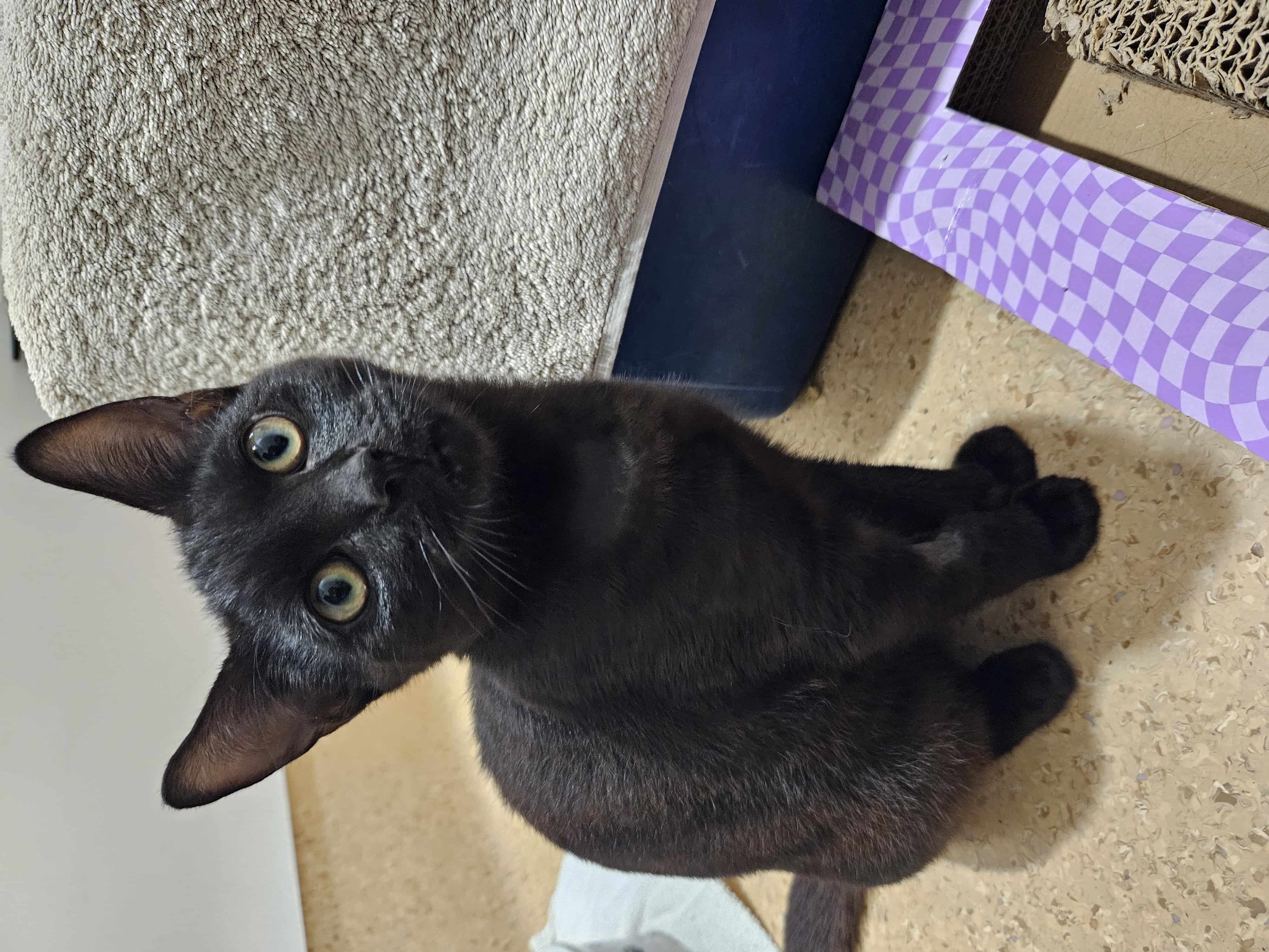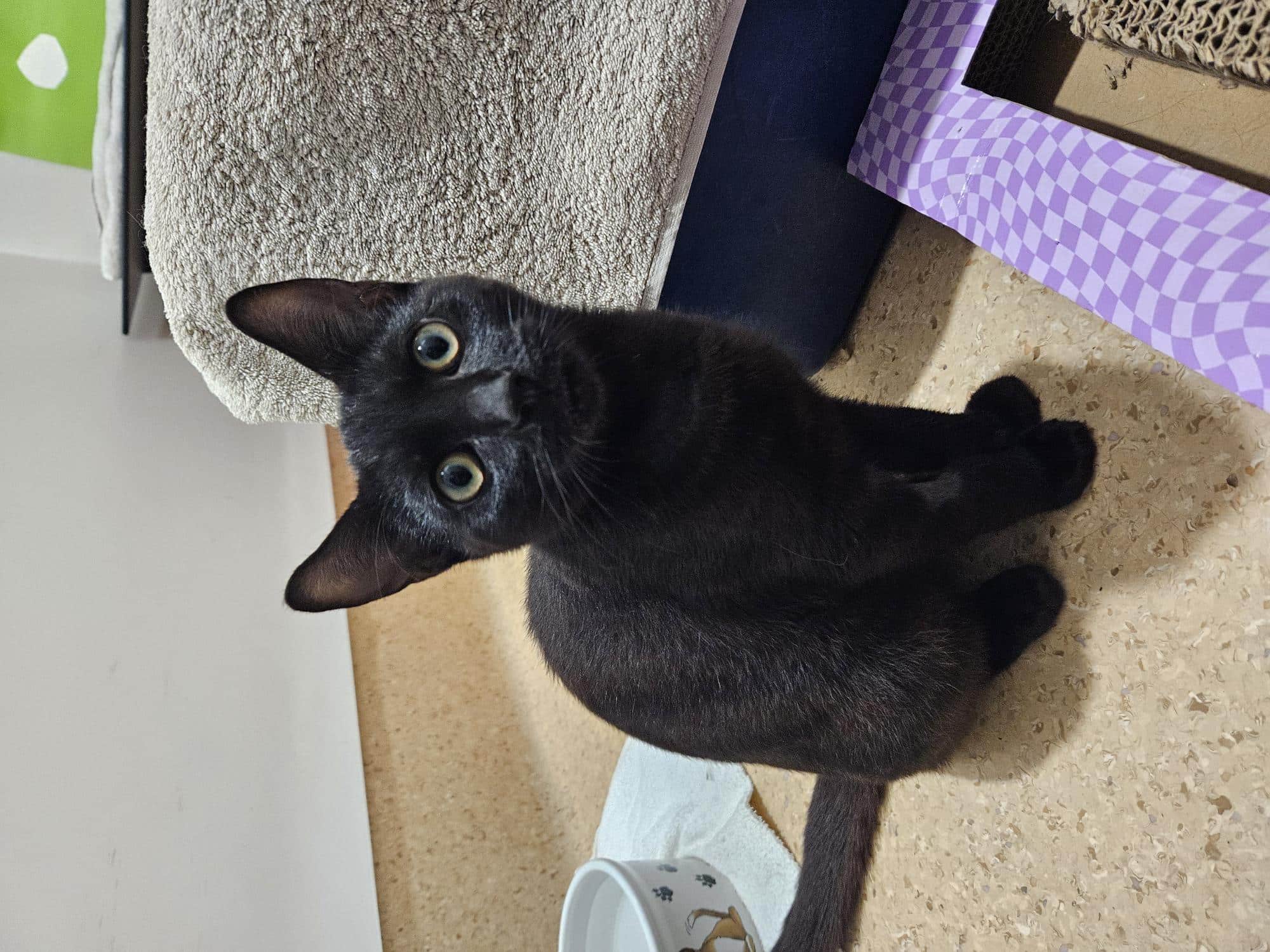 Hi, I’m Aster. I’m a male Domestic Short Hair kitten with a curious soul and a big purr. I’m 6 months old. I’m a high-energy explorer who loves zoomies, climbing, feather wands, and sunbeams. I’m told I’m friendly, goofy, and quick to learn new things. I’m best with kids 6 years and up, who can match my playfulness and give gentle pets when I’m ready. I can be a little shy at first, so I need a family that gives me time to come out of my shell. Additional needs: quiet, calm household. I thrive in a peaceful space where I can nap between adventures and feel safe to explore. A patient home with daily interactive play, a cat tree, and sunny spots near a window would be perfect. If you’re looking for a lively, affectionate companion who will grow with you, I’d love to meet you. Please consider adopting me — Aster could be your new best friend. I am housed with my friend, and if your wanted we could go together and all be besties, if not we could go seperate too.