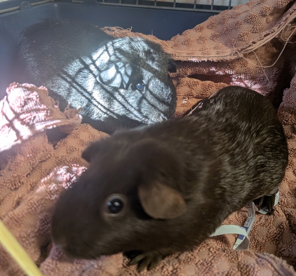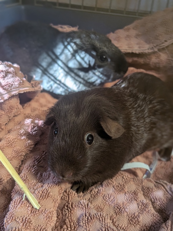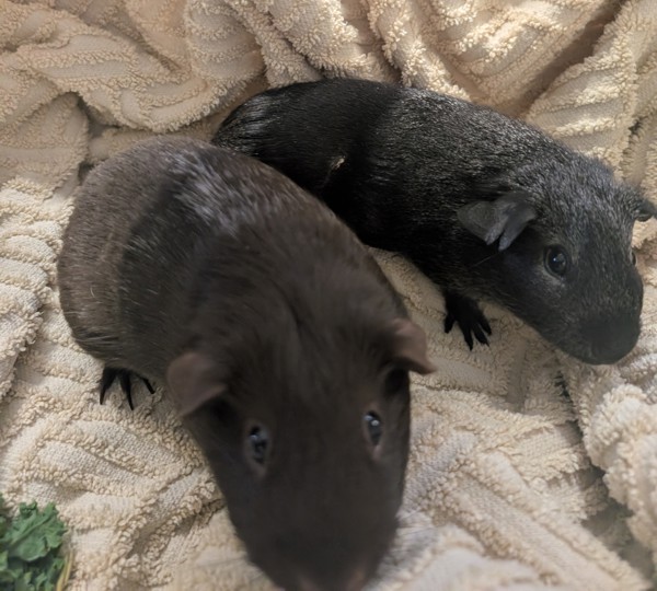 Meet Tina and Turner! These two adorable female guinea pigs are the best of friends and are looking for a loving home together. They share a special bond, so they must be adopted as a pair.