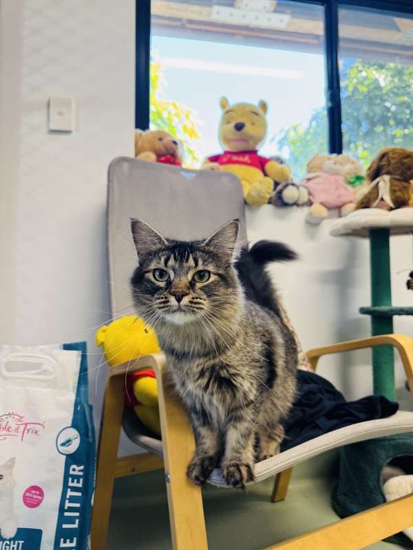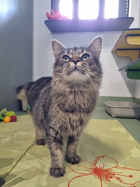 Ester is a beautiful, independent lady with a playful spirit and a love for affection on her own terms. She enjoys chin scratches and will happily let you know when she's in the mood for some TLC, but she's also known to be a bit swishy at times. Ester is great at giving clear signals when she's had enough, so it's important for her future family to be mindful of her body language.