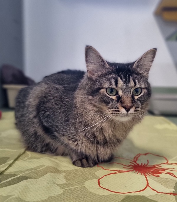 While Ester has a high energy level and can be easily aroused, she may not be the best fit for a home with small children who might find her reactions unpredictable. She would thrive in a calm, patient household, ideally with someone who has prior cat experience and can read her cues effectively.