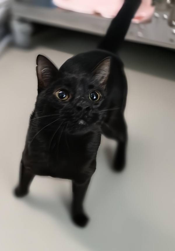 Say hello to Charlie, a sleek and handsome 1 year 7-month-old Domestic Short Hair with a glossy black coat and a calm, independent nature.