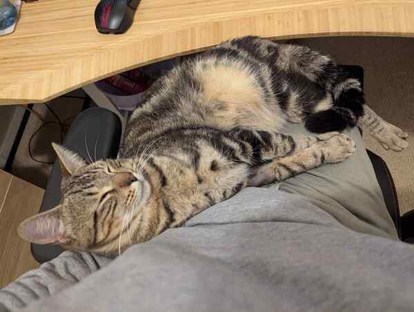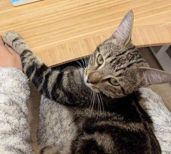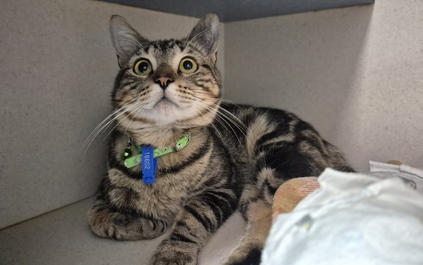 Parrot is a docile lap cat who adores relaxing on the couch-his favorite thing is to hold your hand while you sit together, sharing quiet moments of comfort. His sensitive nature means he can get overwhelmed in new or busy environments, so he'll thrive in a calm home with patient adopters who can give him the time and space he needs to settle in.