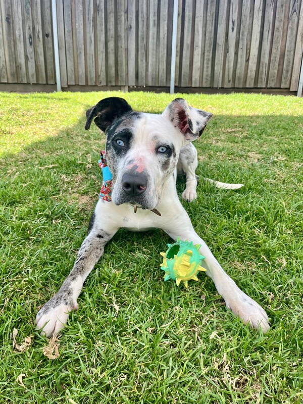 This active guy loves mental and physical stimulation - his favorite enrichment toy is a Kong Wobbler, and he'll happily spend time working out how to get those tasty treats. While Hector has been working hard on his training, he'll need ongoing support, ideally with a positive reinforcement trainer to keep up his progress.