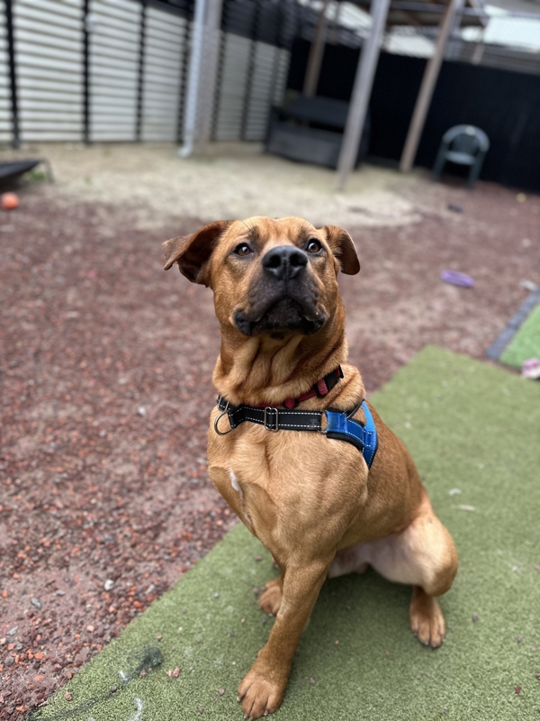 Meet Smiley, the Staffy whose signature grin is every bit as charming as his personality. True to his name, Smiley adores people and never fails to light up when he's around his favourite humans. Due to his boisterousness, Smiley is looking for an experienced, adult-only home where he can learn how to settle and stay calm, especially when the world gets a bit too exciting. He'll thrive with someone who enjoys training and is committed to using positive reinforcement to help build his confidence.