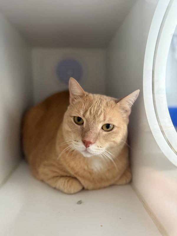 Garfield is currently carrying a little extra weight, but with a caring adopter, balanced meals, and gentle encouragement, he's ready to work toward a healthier future. He may give you his best "just one more treat" look, but beneath that is a cat who simply wants companionship and comfort.