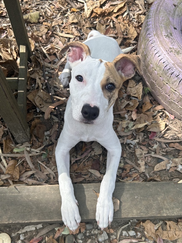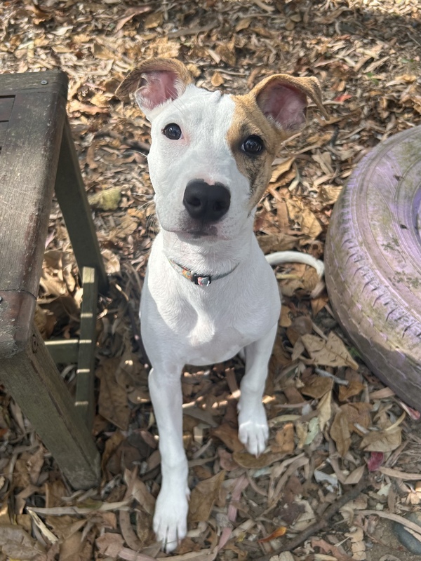Hi! I'm Chickpea, a playful pup full of energy! I love exploring on my own but am always ready for a game or a cuddle. My days are filled with fun, whether I'm goofing around with toys or learning new tricks. I'm gentle and friendly, making friends wherever I go. Adopting me means endless love and laughter. Let's start our adventure together!
