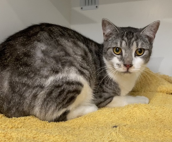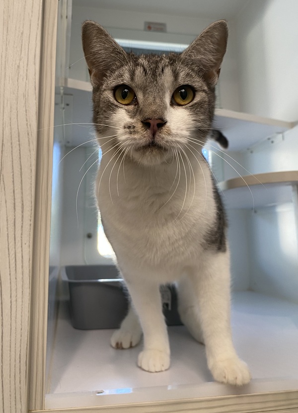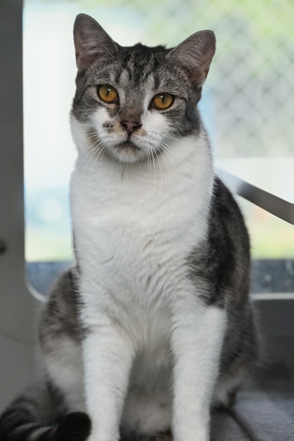 Charlie is a kitten with a heart full of potential and a gentle soul. He arrived at the shelter with his sister through no fault of their own, and while he may be a little shy at first, Charlie is learning to trust and open up to the world around him. With a calm environment, gentle care, and a few loving chin scratches, this sweet boy will blossom into a loyal and affectionate companion. Charlie's quiet nature makes him a perfect match for a patient family who can offer him the love and security he deserves. Whether curled up in a cozy nook or exploring his surroundings with curiosity, Charlie is sure to bring warmth and joy to your home. If you're ready to help a shy kitten grow into a confident cat, Charlie is waiting to meet you!