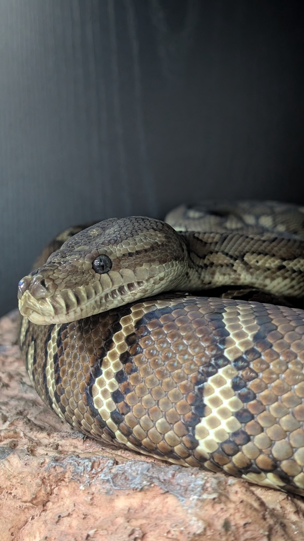 My name is Pepper and I'm a Centralian Carpet Python (or you might hear people call me a Bredli). My earthy tones and markings help me blend in with the desert environment. I'm found naturally in the deep rock crevices, caves and tree hollows of Central Australia.