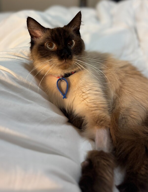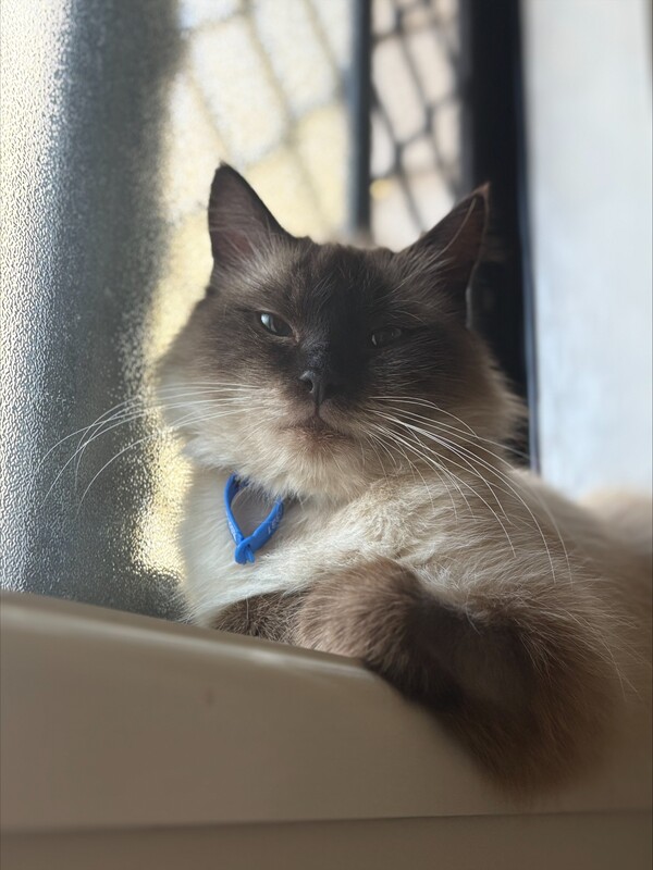 Winnie is a beautiful Ragdoll with soft, plush fur and the sweetest blue eyes you've ever seen. She's a little timid at first, preferring quiet corners and gentle voices, but once she feels safe, her affectionate nature begins to shine.