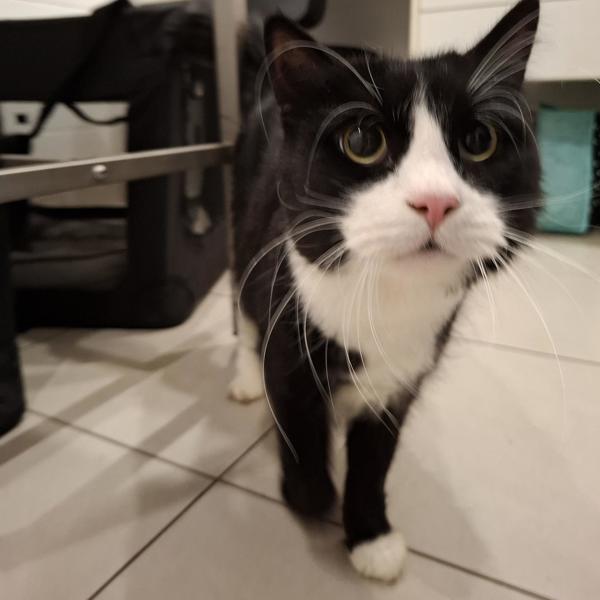Milo is a big cat with an even bigger heart - and an appetite to match. Weighing in at a majestic 8kg of fluff, charm, and curiosity, he confidently roams his kingdom (a.k.a. every room in the house) in search of snuggles, snacks, and the warmest possible nap spots.