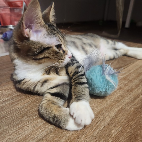 Hi, I'm Athena. I'm a bit of a wallflower, taking my time to observe and explore before I dive into play. Once I get to know you, though, my playful and curious side shines! I love discovering hidden nooks and chasing after toys, but I need a little patience as I'm quite shy at first. I promise, once we bond, I'll be your loyal companion. If you're looking for a sweet, playful friend who'll slowly uncover her vibrant personality, I'm the perfect match. Why not bring me home and let our adventure begin?