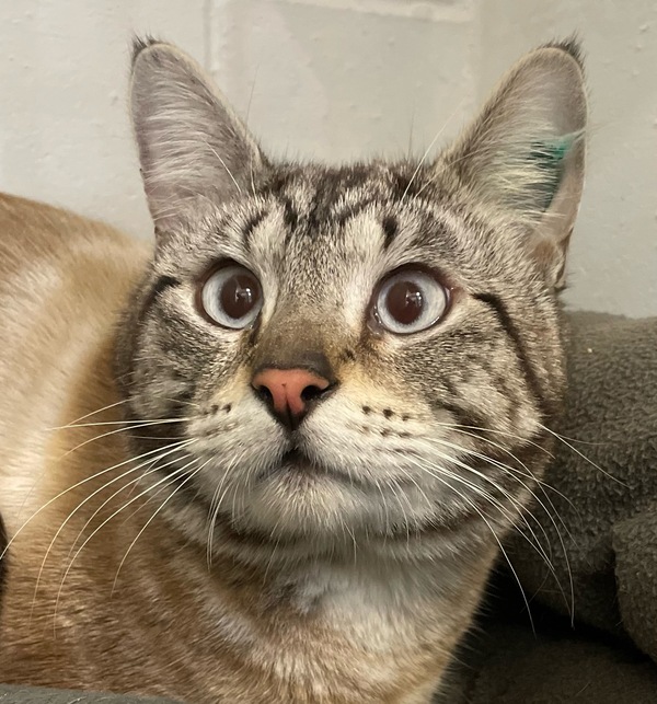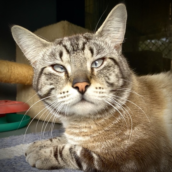 ** I have big, beautiful eyes and a thick, soft coat. I love being brushed! FYI, my eyes are very sharp at seeing you opening food packets as I'm an excellent eater.