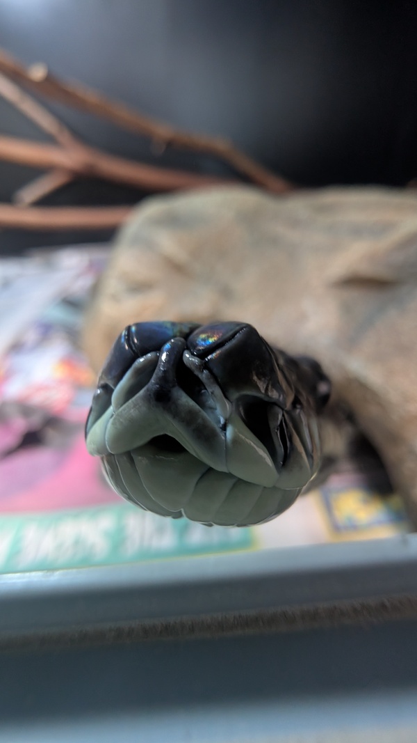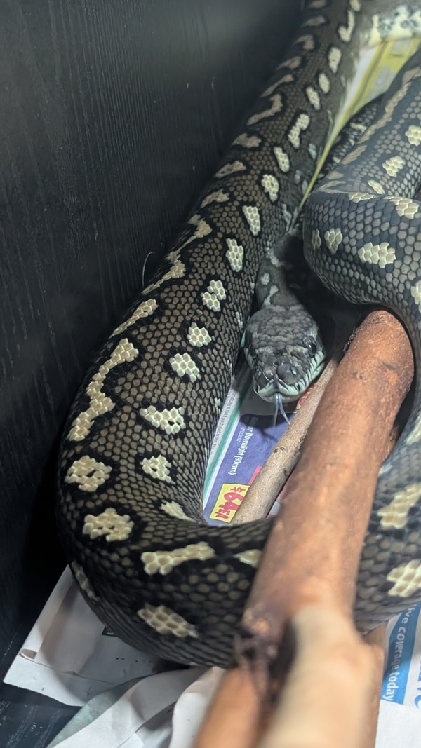I am still getting used to handling so prefer to come out of my enclosure with a hook. I have improved with my handling since arriving at RSPCA but will need continued practice to improve. I am definitely a nosey parker and love to see what's going on outside my enclosure. I love my rodents and am a fantastic feeder!