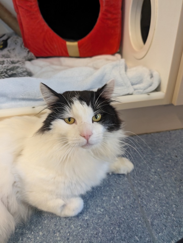 Do you have a soft spot for dramatic floof and big personalities? Then Orca may just be your soulmate in cat form. With his tuxedo-colored fluff and striking presence, he's not just a cat - he's an experience.