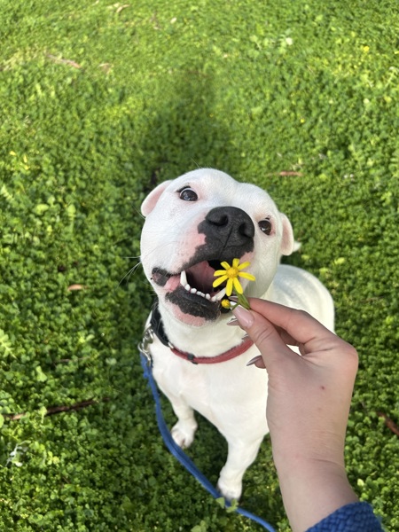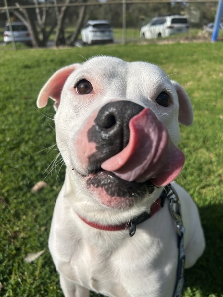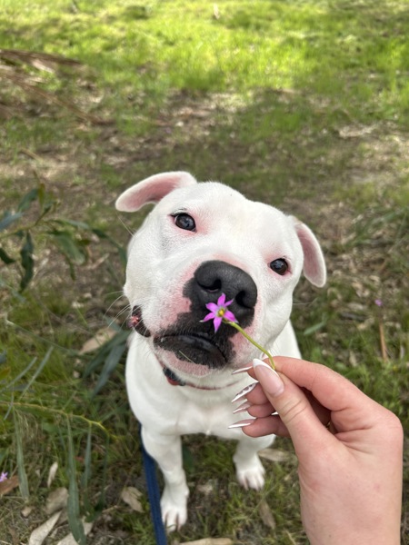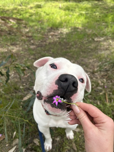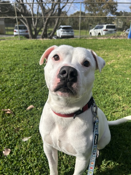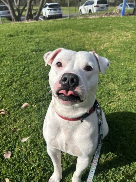 I've got the classic Staffy charm - loyal, goofy, full of cuddles, and very into being your shadow. My ideal day? A nice walk, a bit of playtime, a treat or two (or five), and then a proper snuggle session with my favourite person. If you're after a best mate who doubles as a cuddle pro and part-time clown - I'm your guy!