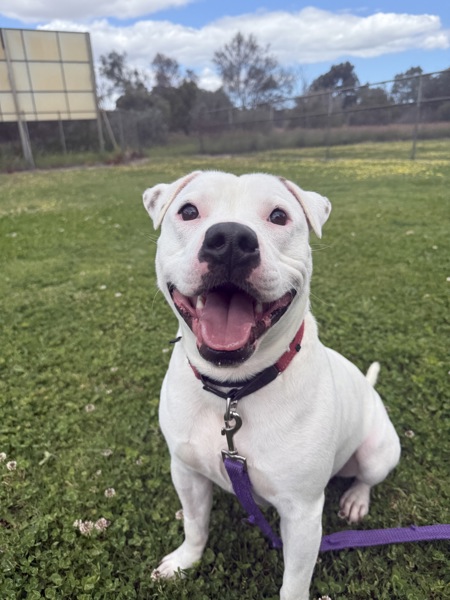 Hello, lovely humans! I'm Marcus - a two-year-old Staffy lad with a big smile, even bigger heart, and a face you'll fall in love with instantly (go on, just look at me).