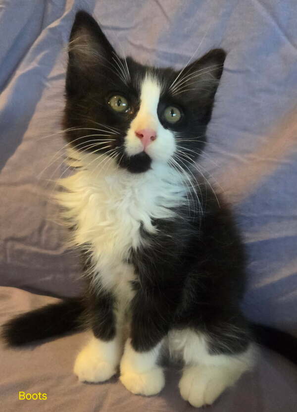 I'm a 10 week old kitten with the softest fluffy coat (which I keep very clean) and a playful, mischievous streak! My name is boots, probably because of my cute white paws and my cute girl swagger.
