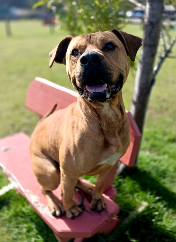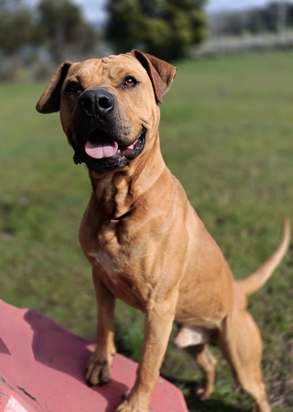Meet Tank, a gorgeous tan Mastiff Mix with a heart as big as his paws. At nearly five years old, this desexed male is a gentle giant who adores people and thrives on affection. Tank has a playful spirit and loves nothing more than tossing around his favorite toys. Despite a rough past-he's bravely healed from horrific wounds-Tank has shown nothing but resilience and love, making him a truly special companion.