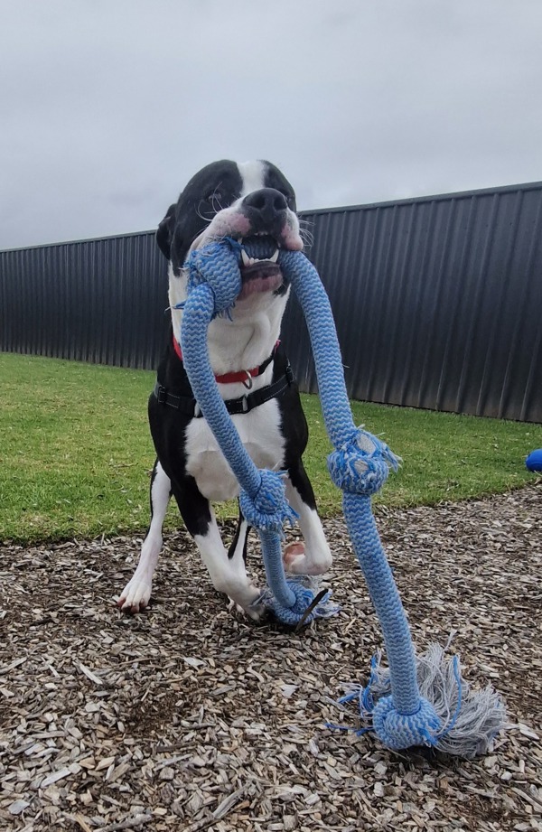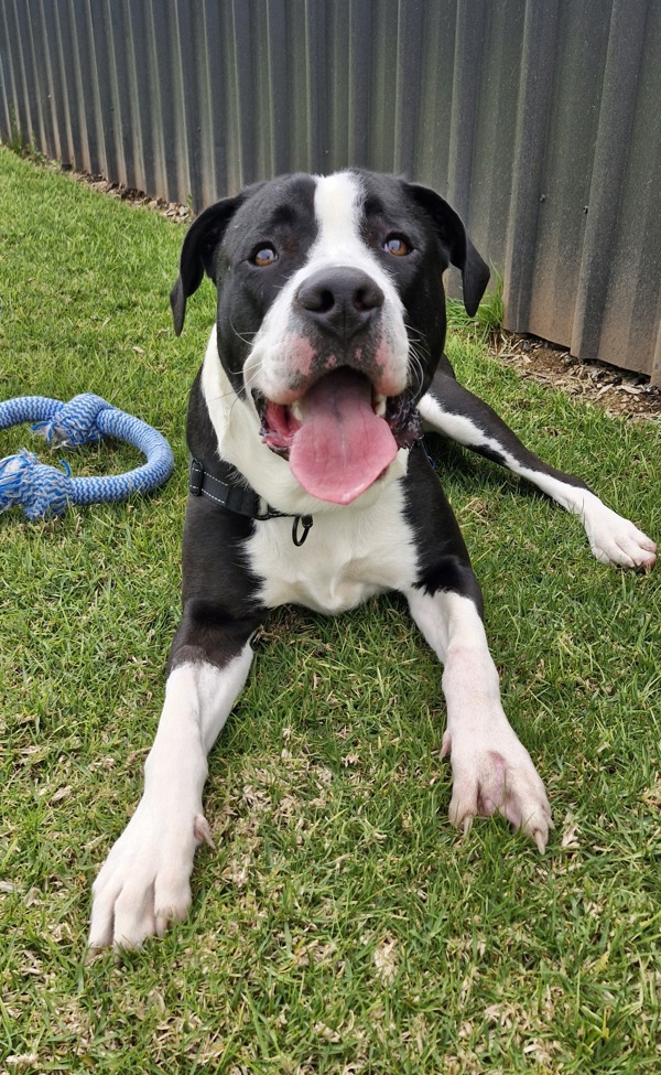 I'm a big goofy boy with all the love in the world to give you! I love getting to hang out with everyone, being spoilt with snacks and getting to run around and play with giant toys is the absolute best! I really don't know my own size sometimes and think of myself as a lap dog, but it will be sure to make you laugh I'll put a smile on everyone's face. I will need a dedicated home who will help fulfill my daily needs and slowly let me adjust to home life, I just love my people so much!