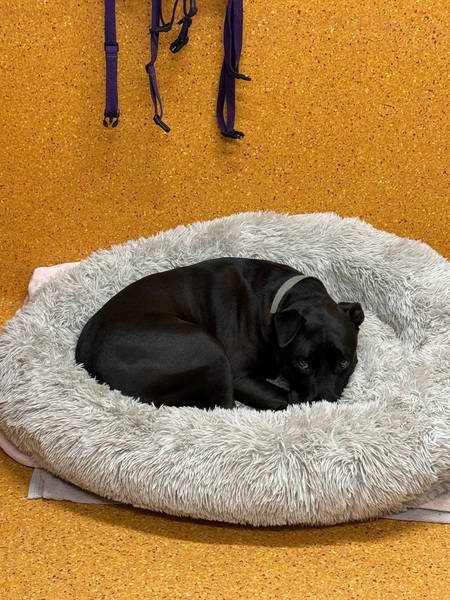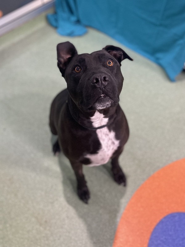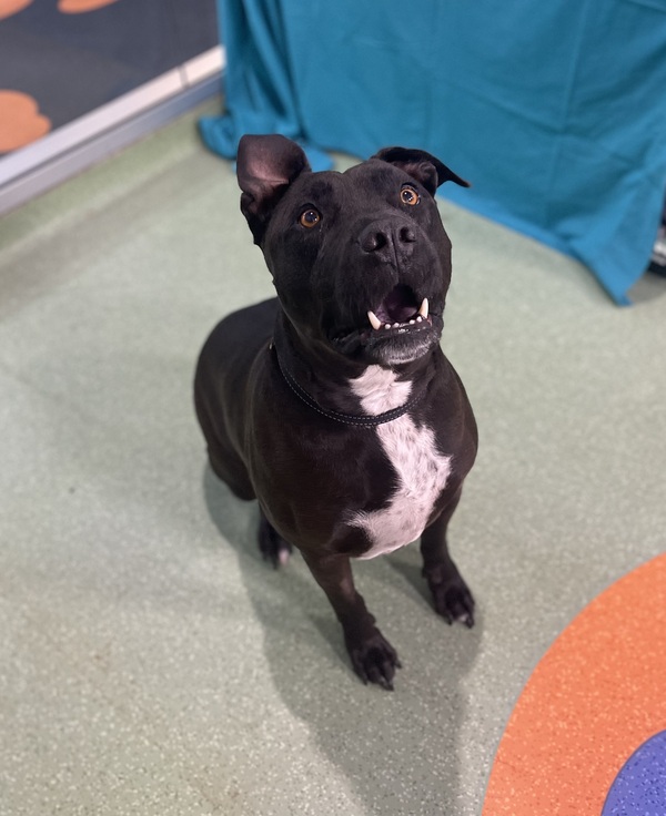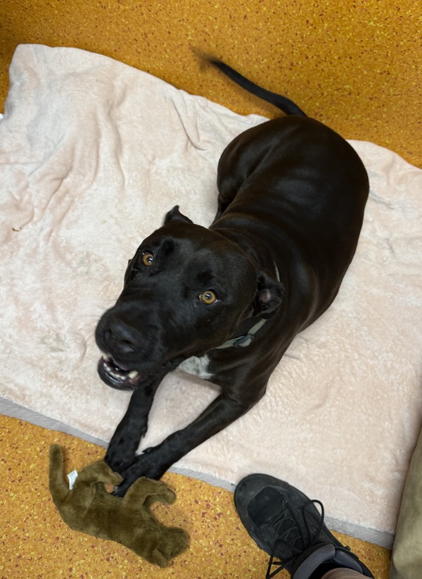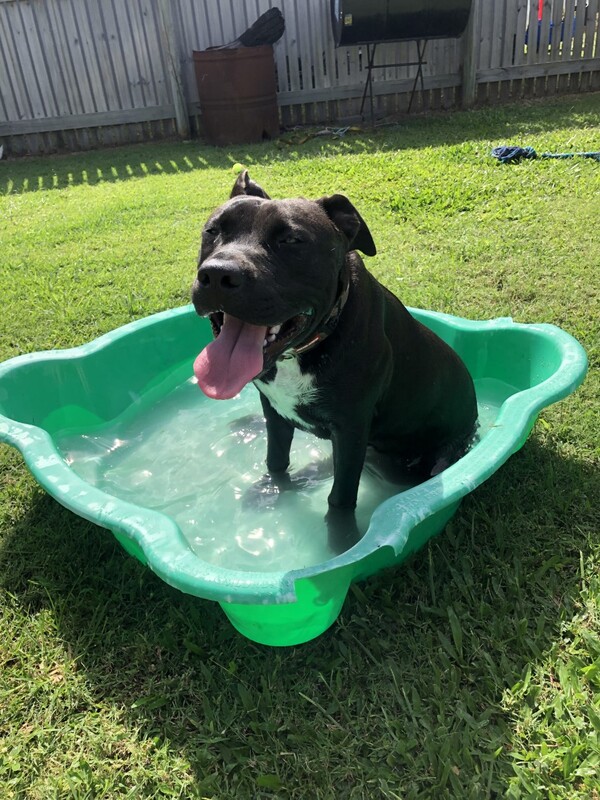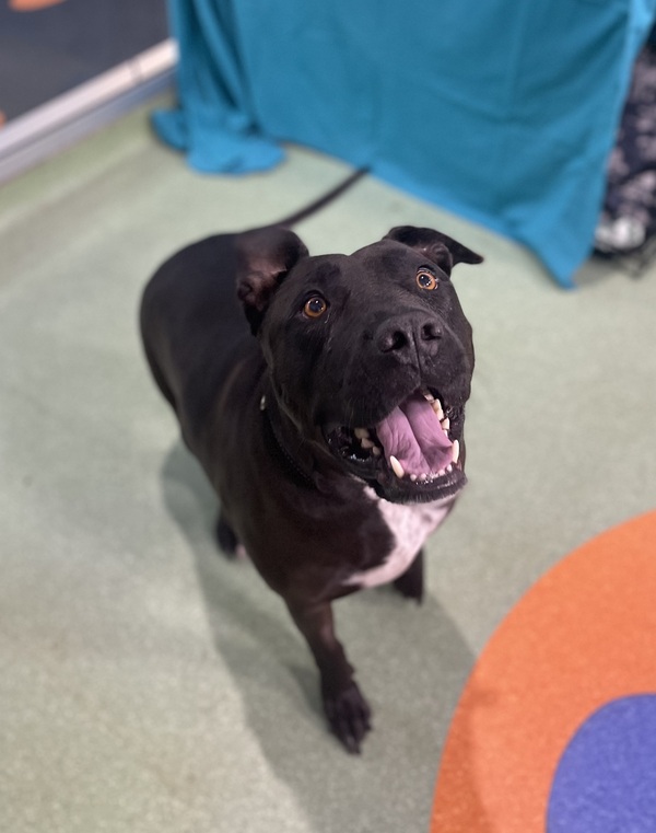 Tank enjoys playtime and can get a bit excitable, especially when splashing around in his beloved shell pool. He can be a bit strong on lead, so he'll need someone who can provide ongoing training and guidance to help him be his best self. While he's lived with young children before, his size and energy may be a bit much for some-so any kids in the home will need to meet him at the time of adoption to ensure a good fit.