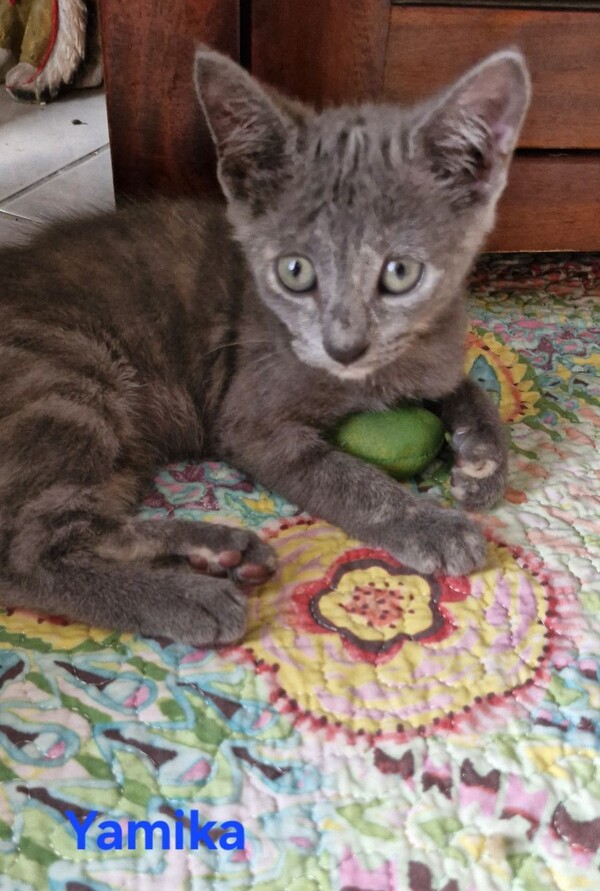 I'm a beautiful little grey kitten with a soft, sleek coat and a gentle, loving personality. I enjoy playtime, exploring new spaces, and curling up for cozy naps after a fun day.