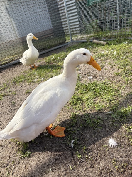 Say hello to Taffy and Daffy, two sweet-natured ducks looking for a forever home together. This bonded duo is full of personality and charm. Together, they make a calm, friendly pair who enjoy each other's company and bring a peaceful presence to the yard.
