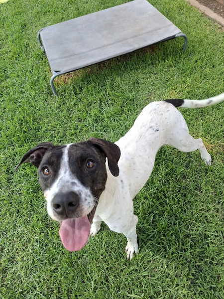 I can be a little shy at first, so I'll need someone patient to help me settle in and go slowly with new experiences. I'm very food-motivated and eager to please, which makes training fun! I already know how to sit and I'm learning to lie down. Sometimes I get a bit excited but my friends at the RSPCA are helping me work on my on my 4paws and sits.