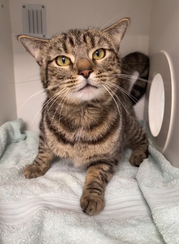 Hi, I'm Oscar. I may be a bit shy when we first meet, but give me a little time and I'll show you just how sweet and gentle I can be. I love quiet moments, perhaps sitting by your side while you read or work. I'm looking for a forever home where I can share all the love I have to offer. If you're looking for a calm companion to share your days with, I'm your guy. Let's make beautiful memories together.