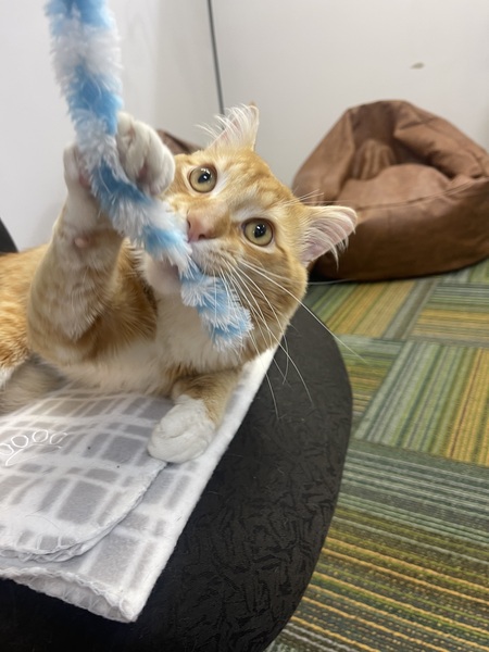If you start giving me scratches, don't expect to stop any time soon - I'll charm you with my flirty head tilts and soft purrs until you melt completely. And if you show me a toy, I will play with you for hours - wand toys are my favourite!