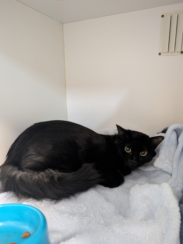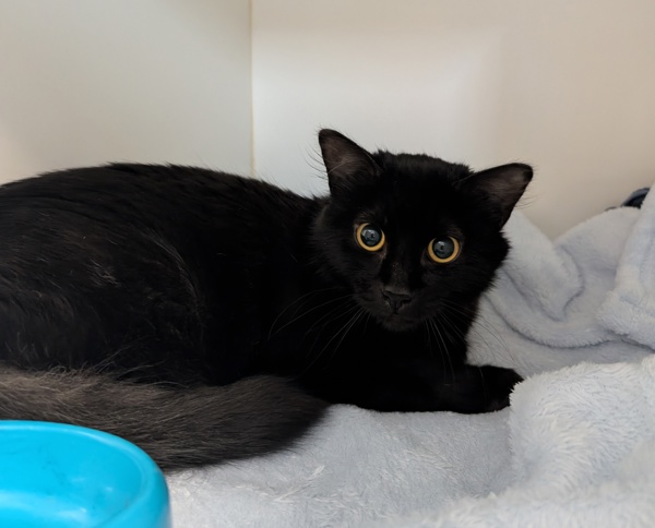 Blueberry is a one-year-old beauty with a soft black coat and an even softer heart. She's a timid little cat who's still learning that the world can be a safe and loving place.