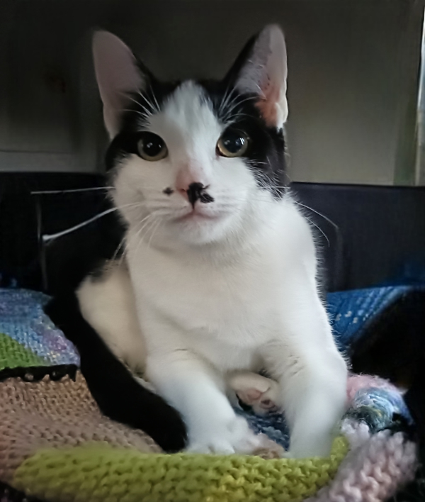 Meet Tula, a beautiful female domestic shorthair kitten with a striking white and black coat. This darling little girl is full of love, offering endless smooches and a symphony of purrs to those she trusts. Tula came from a colony of cats and has blossomed into a sweet companion who just needs a little time to feel safe. Her gentle nature and affectionate personality make her a joy to be around.