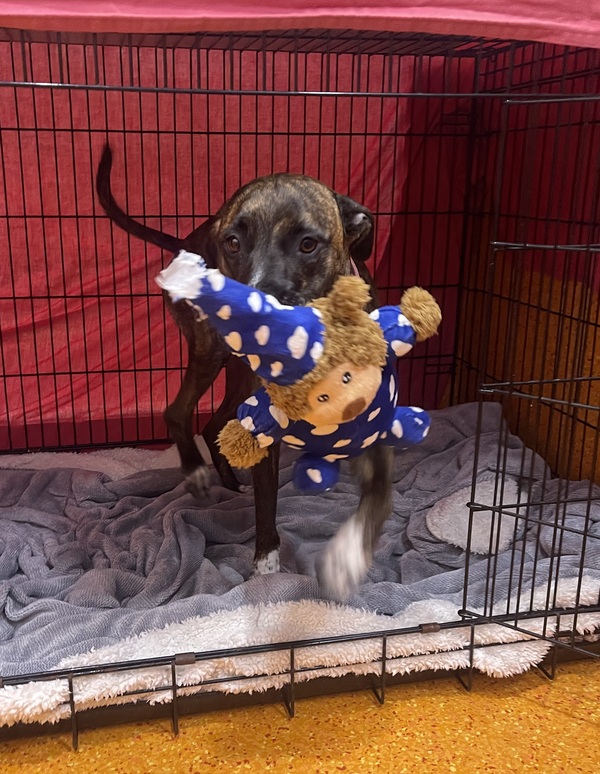 Food is a big motivator for Winnie, and she enjoys enrichment activities like snuffle mats, slow feeders, and kongs. She also LOVES soft toys!